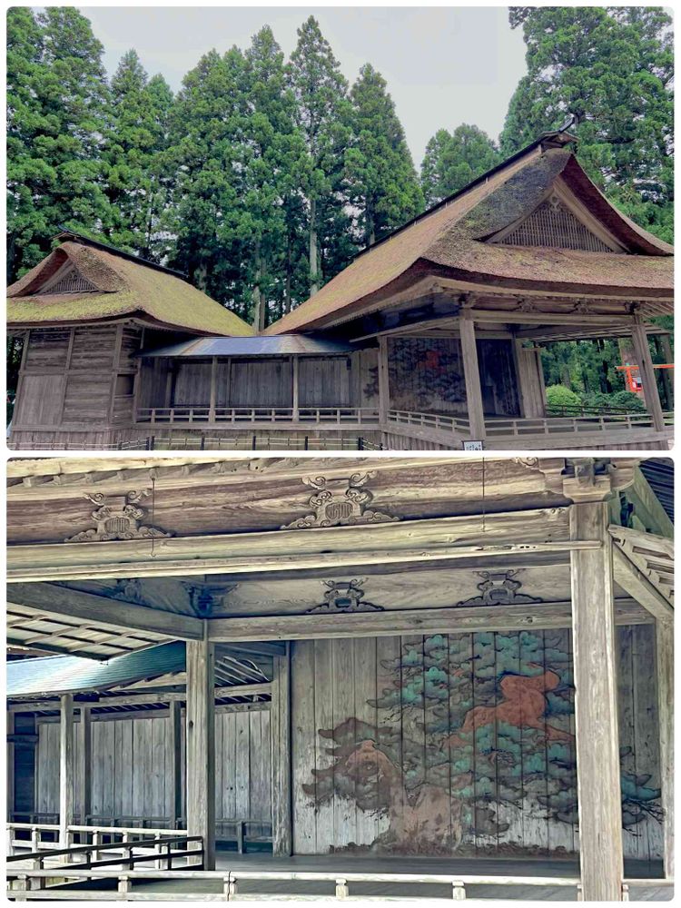 能舞台は、嘉永2(1849)年に焼失した後、6(1853)年に再建されたものだそうです。