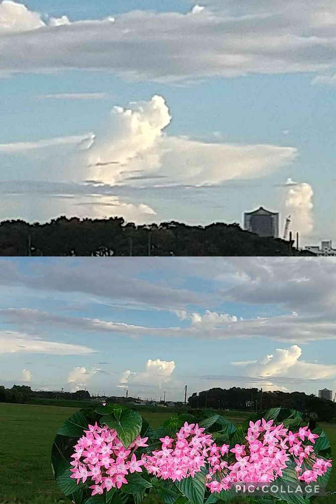 とても素敵な☁️とピンクのペンタスが、とってもお似合いです。(*^▽^)/★*☆♪☁️🌸☁️🌸☁️🌸☁️🌸☁️🌸