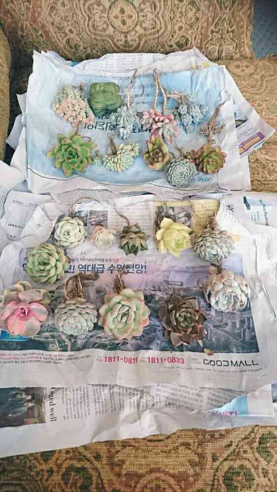 今、無事に税関通れるように多肉ちゃん達おしゃれしてます😅