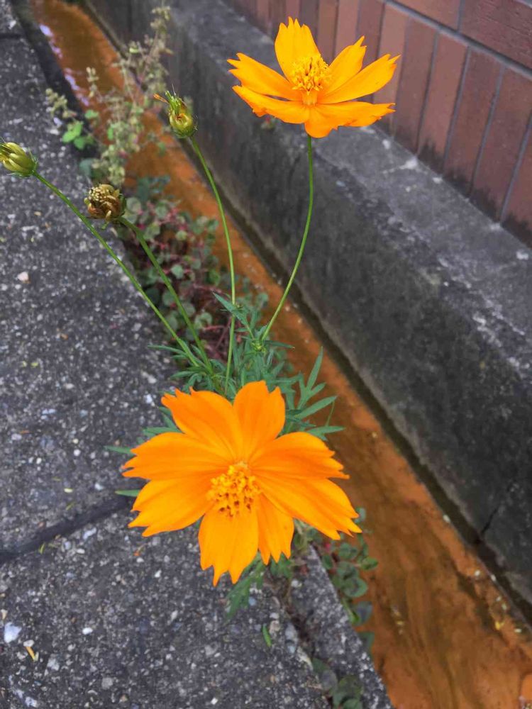 お写ん歩してたら、ある家の前の側溝と道路の隙間からキバナコスモスが凛と咲いてて思わず撮影‼️😊 ところが翌日この家に植木屋さんが入ってこの子も除草されてしまいました。奥の隙間ポリゴナムも無くなってました🤣
