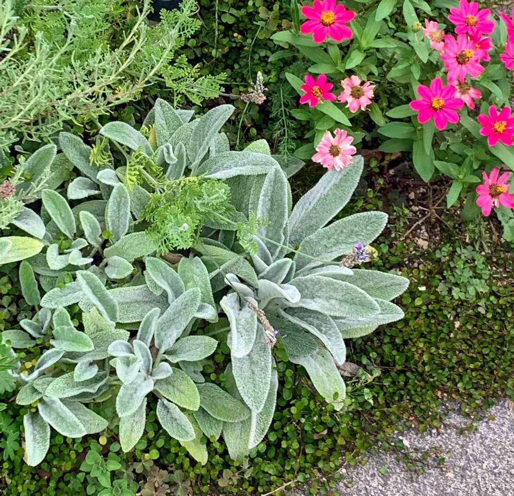 素敵なお庭ですね〜💕ラムズイヤー、大好きなんですよ。触らずには、いられません😄長く咲いてくれるお花ってありがたいですよね。やっぱり、お花があるのと無いのでは、違います👍