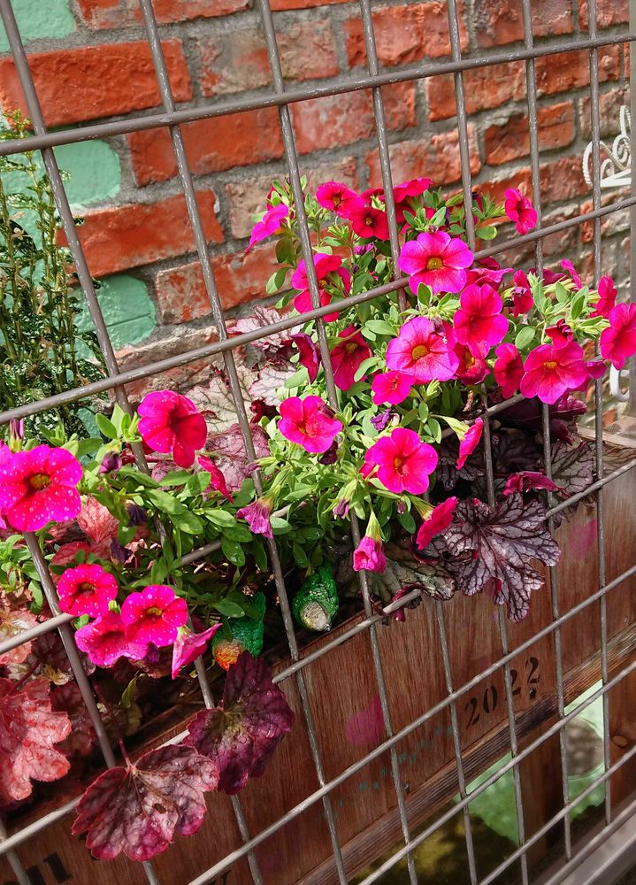 両側をヒューケラさんに挟まれ、申し訳なさそうに咲いていたペチュニアさんが 幅をきかせだしました😁💕(笑)