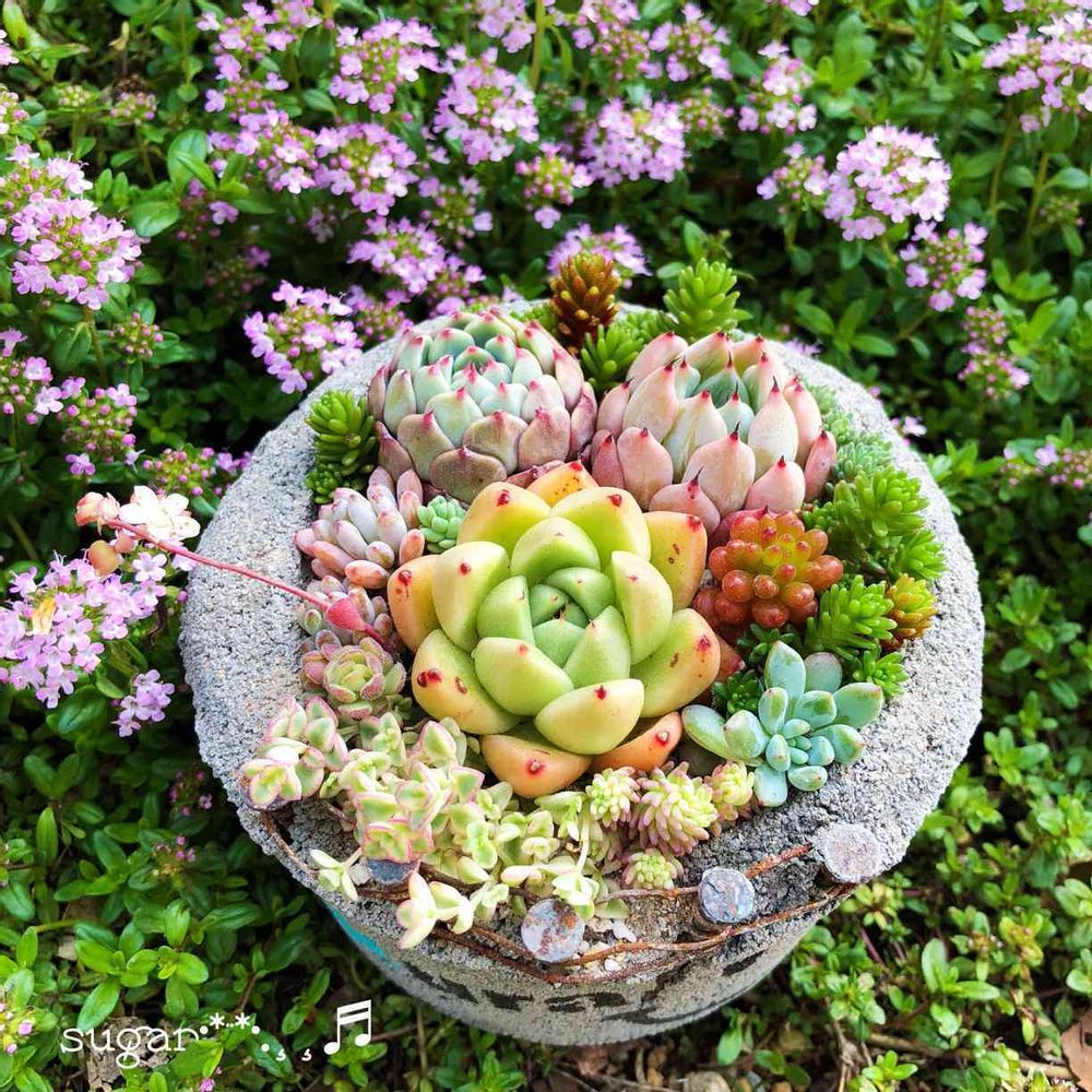 可愛いい ですね💕 コンクリ鉢の寄せ植え 可愛い💗💗💗💗(⁎˃ᴗ˂⁎)