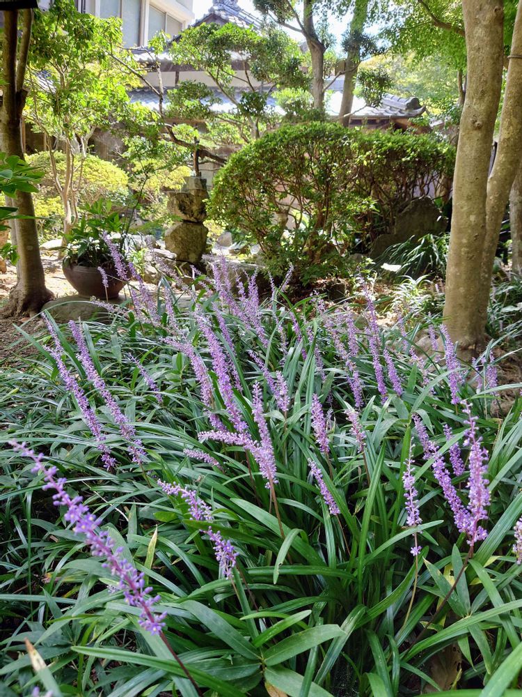 休憩所庭園の横で ヤブランがたくさん咲いています❗☺️