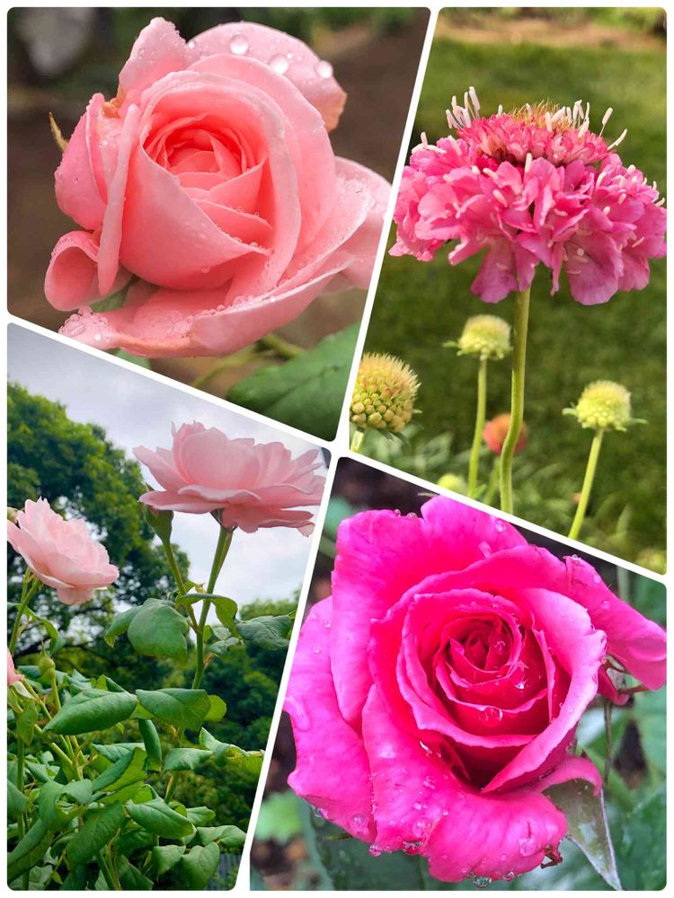 右はスカピオサ クイズサーモンピンクと挿木のバラ🤗✨✨