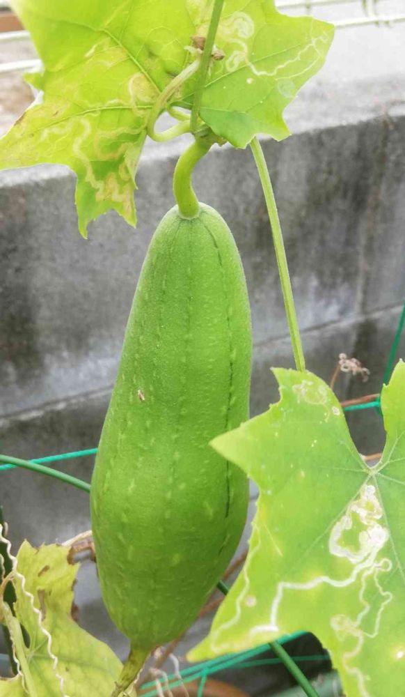 台風14号の影響で風がすごい😱 余った苗をいただき、たったひとつできた実。どうぞ落ちませんように🙏