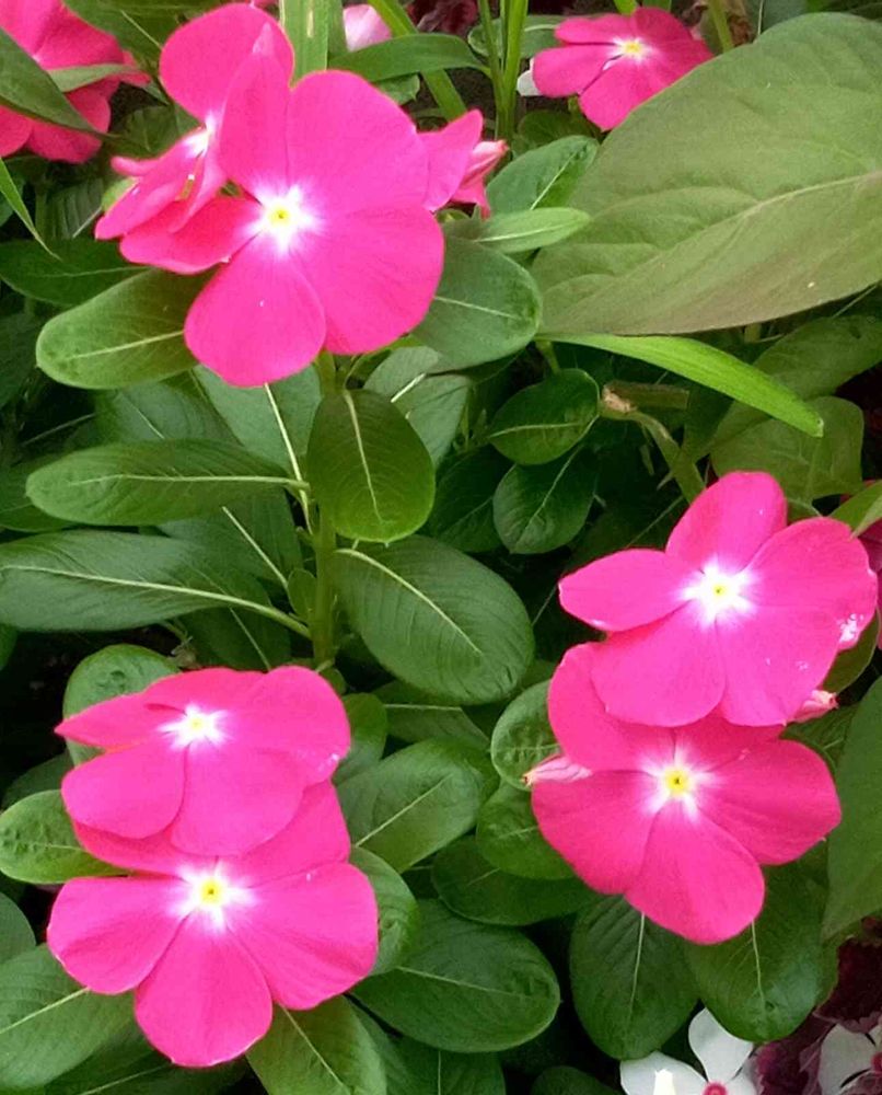 通りすがりに見かけました、とある駐車場の花壇に咲く日々草 (ニチニチソウ) の花☺️