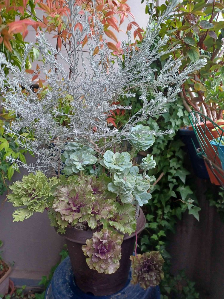 お正月用の葉牡丹寄せ植え今年はちょっと短く切り戻していたら丁度いい高さの踊り葉牡丹に💚