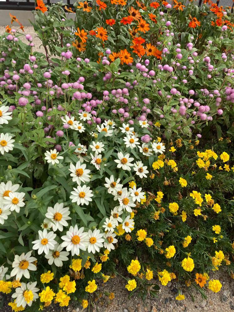 夏前にコスモスの種をメル〇リで購入して咲いたら投稿しようとしたのですが上手く育たなく咲くの❓って状態💦なので近くの公園で見つけた花壇の花で2ヶ月ぶりのGS参加‼️台風14号が来てますが少しでも被害が少ないように🙏