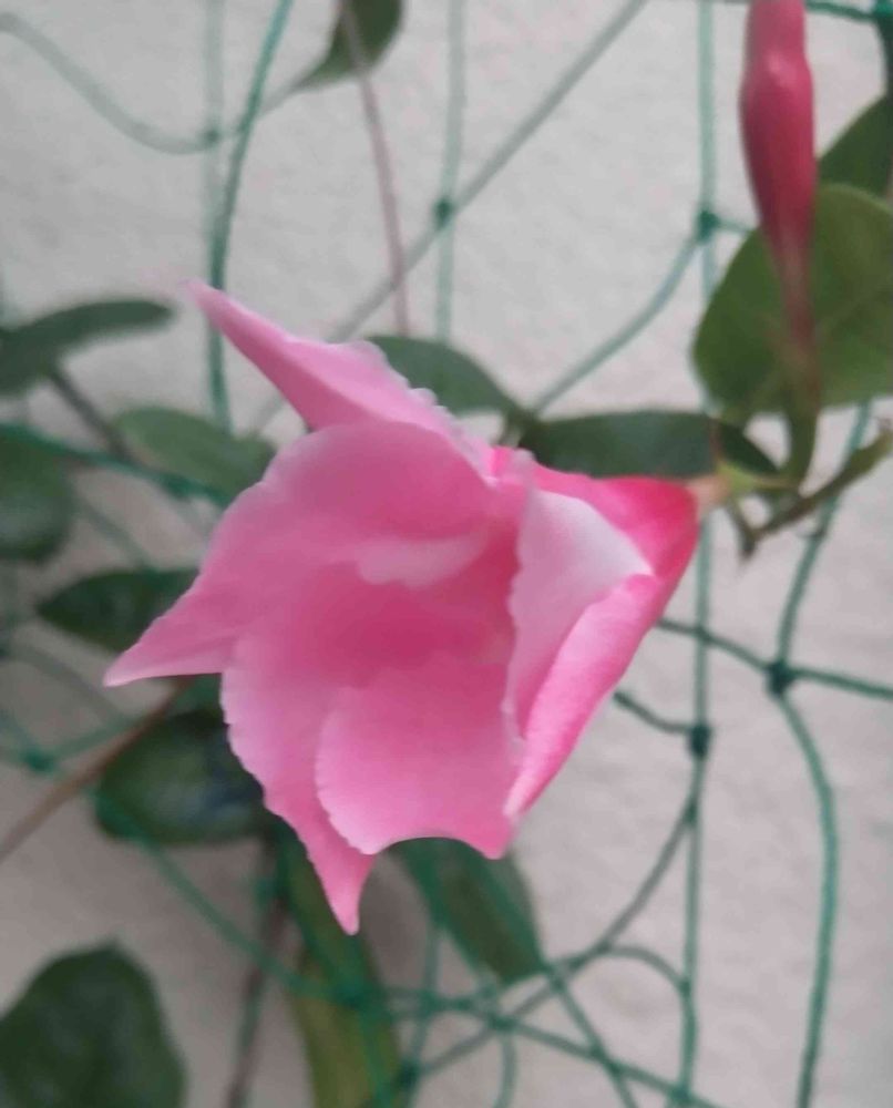 台風の後、咲こうとしているマンデビラ ルビースターさん。