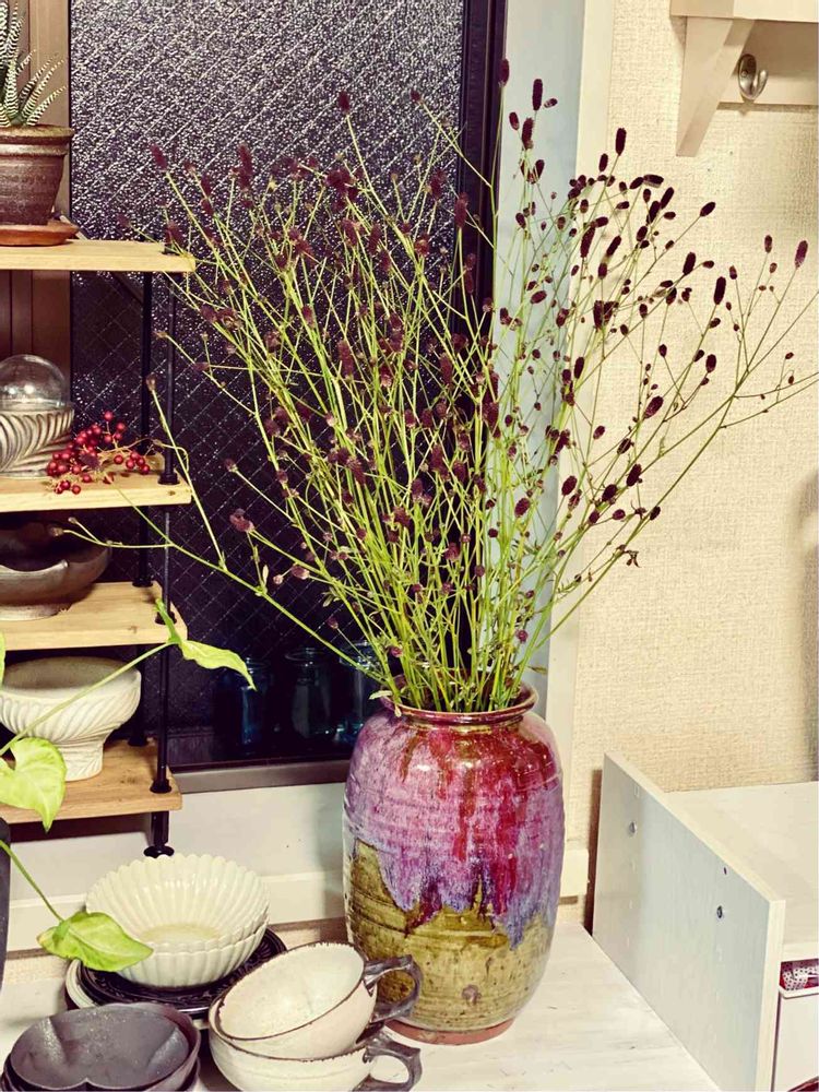 今回は30年前に、石垣島のお祭りで買った壺に生ける♪