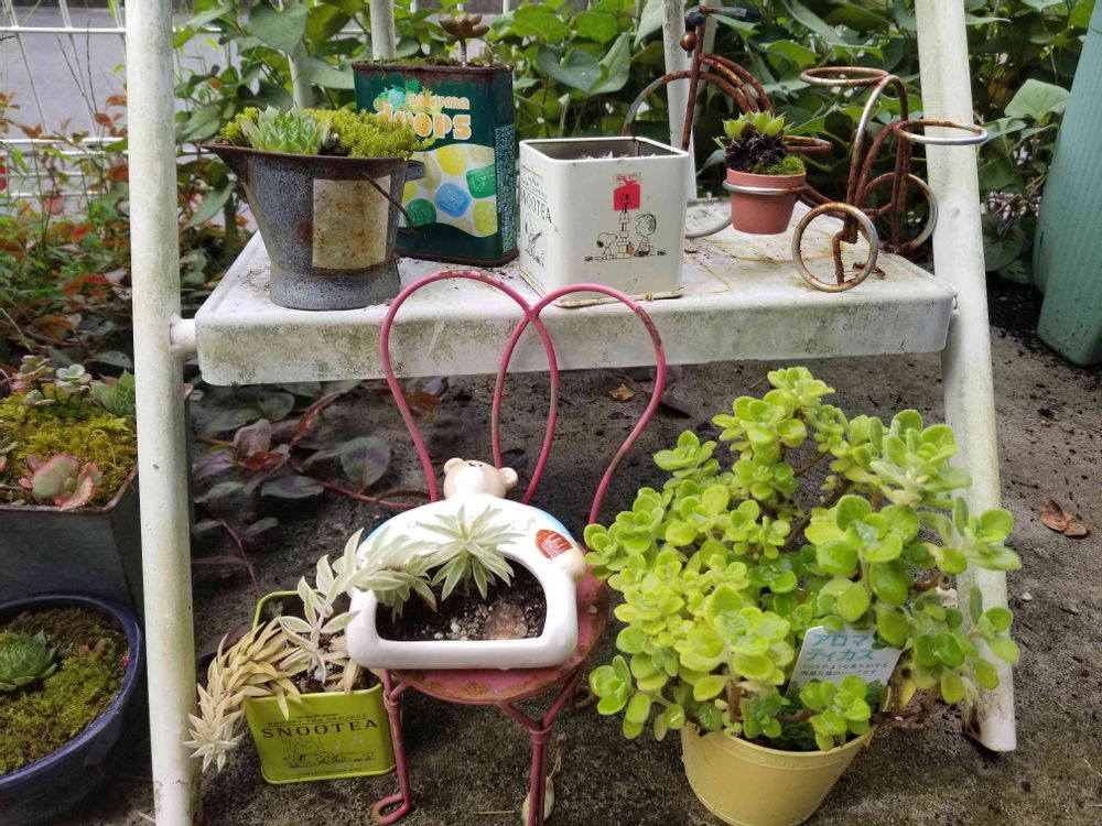 台風で引っ越しする前の多肉さん。店の玄関なので小さな子たちです。