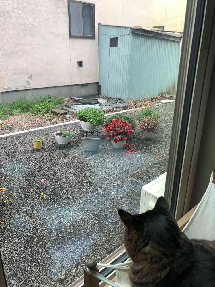 ごめんよ💦キジトラ猫のお気に入り、サフィニアシャインレッドさんは枯らしてしまいました🙇♀️