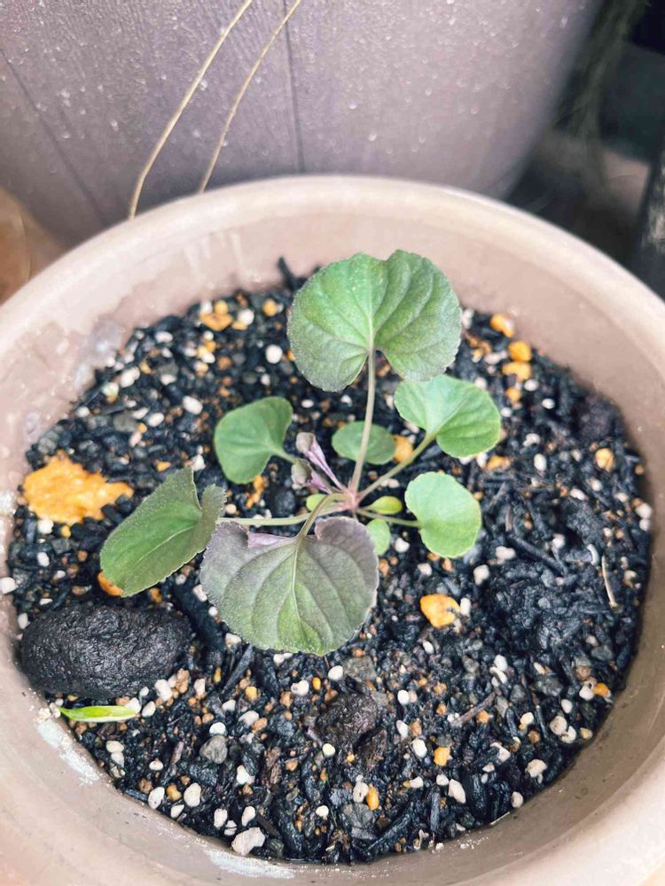 カルーナさんの鉢から、雑草ではない感じの子発見‼️地植えのラブラドリカの零れ種かも と思い、早速おひとりさま鉢へ…