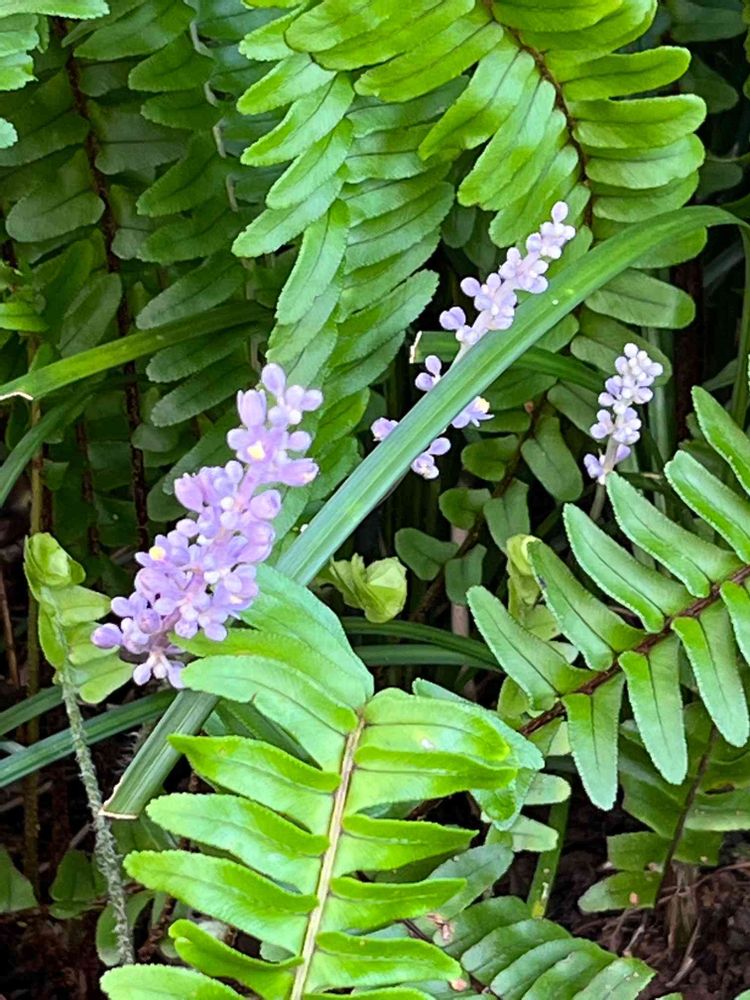 シダが増え過ぎて、ヤブランを覆っています。居場所を確保してあげなきゃです😅