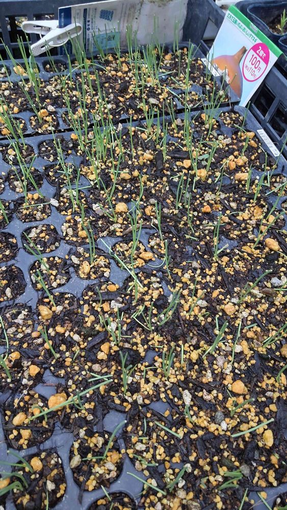 11月上旬植え付けの為、セルトレイで育成中。5cm位で2回程カットしました。早く太くなることを期待しています。😁😃☺️
