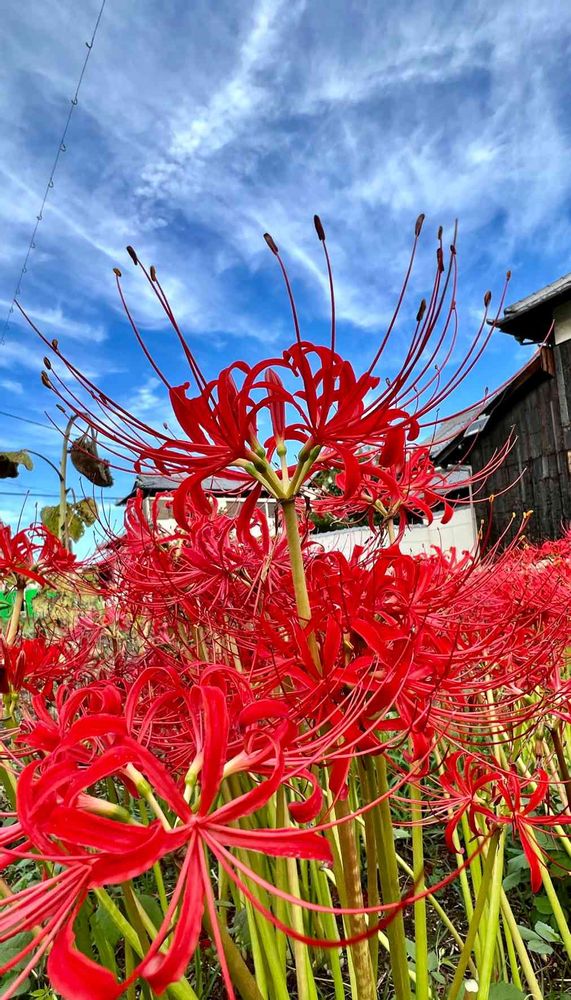 青い空に真っ赤な彼岸花が素敵ですね✌️