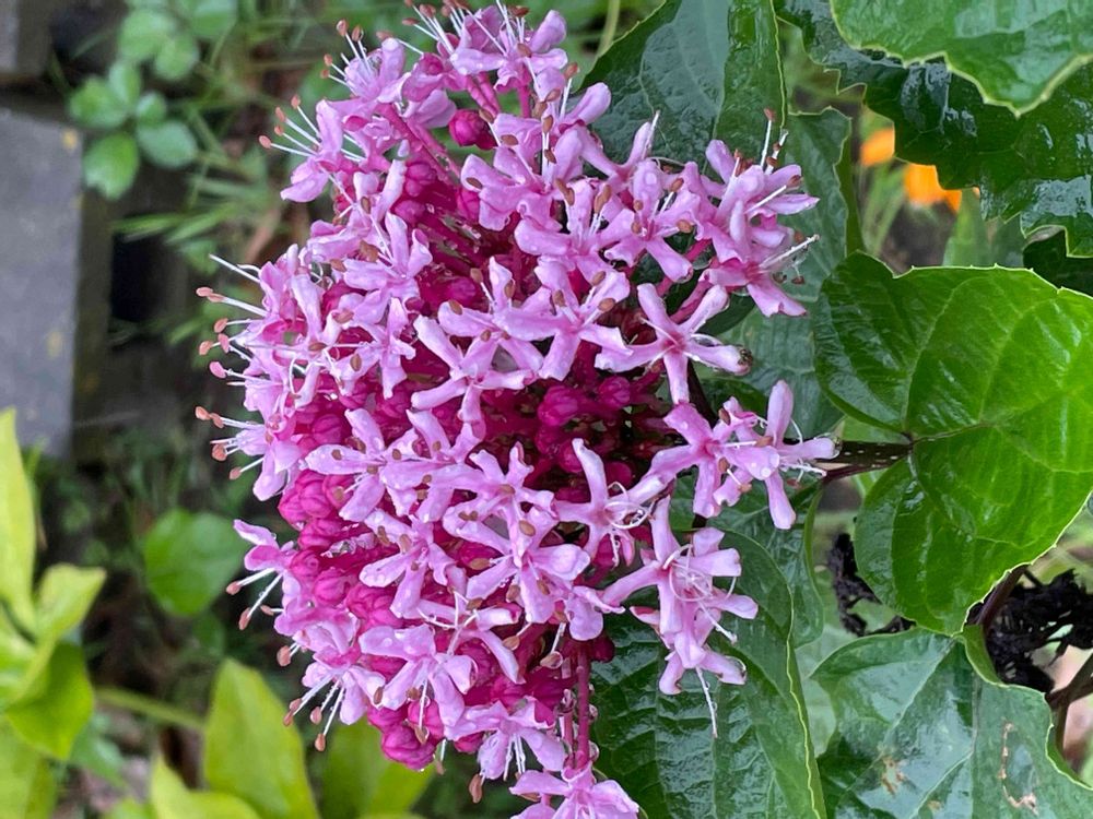 大雨の中、病院のお庭に咲いていたピンクのお花🌸🌸