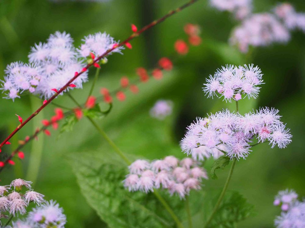 優しい色合いのアゲラタム🌼やね🎵赤色の花🌼は、なんやろか⁉️アクセントになってるやね🤗