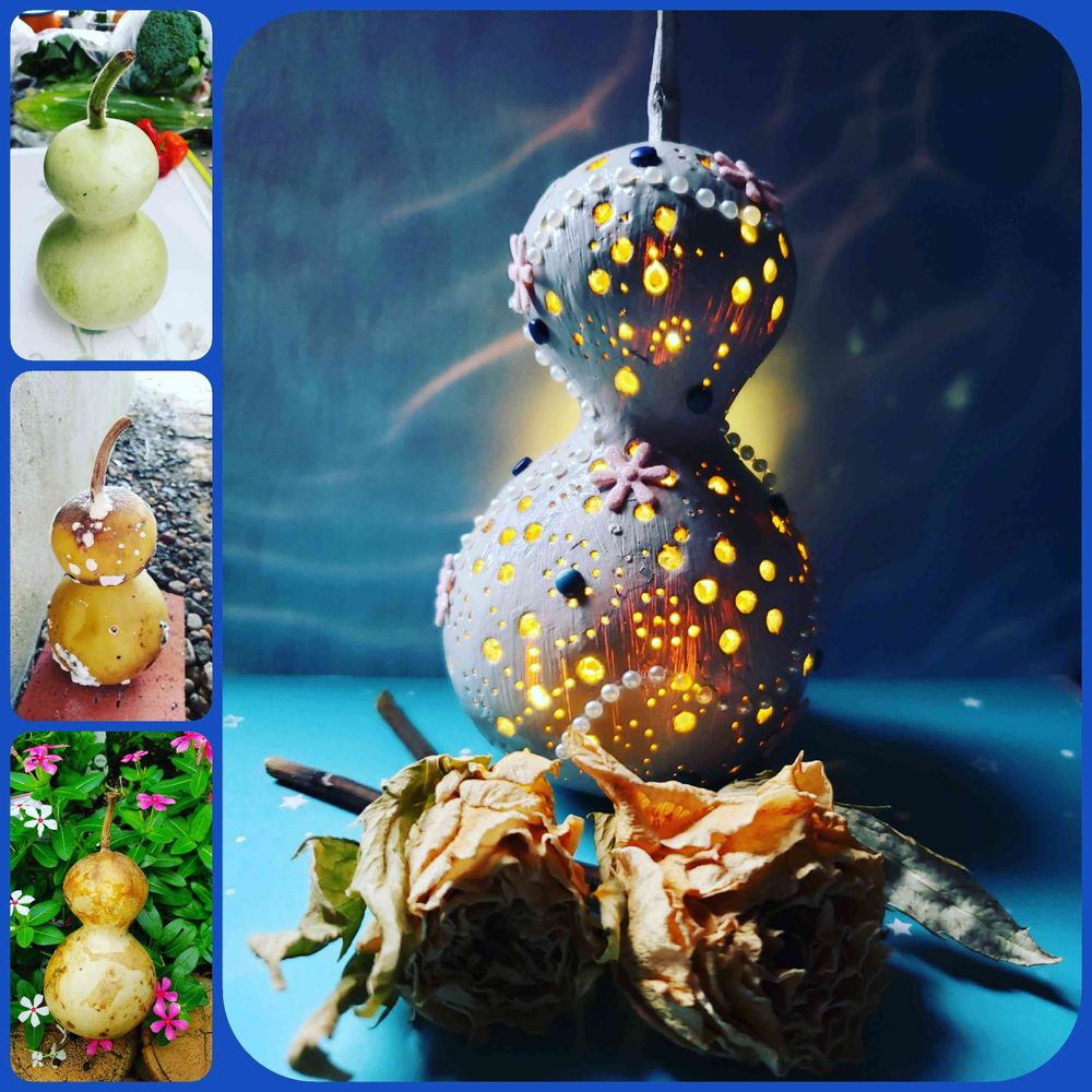オモチャカボチャがたまたまカラカラに乾いたので、ランタン作ってみました。その時調べたらひょうたんランプ可愛い❗と思てひょうたん探してたんです。