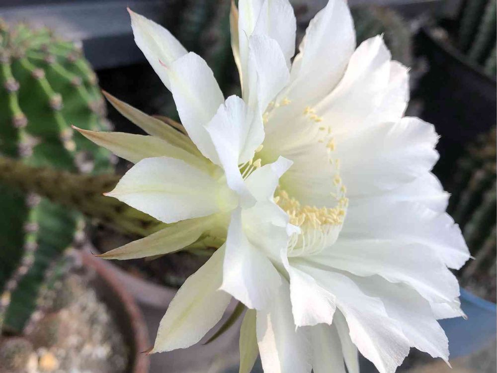 この🌵は亡き義父から受け継いだもので、義父さんは、最盛期には一度に🌵の地が見えないほど10個以上咲かせていました。