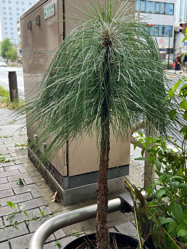 台風が去った後のオフィス街の歩道。小さなプランターに入ってるけどもしやこれはダイオウショウ(ダイオウマツ)?
