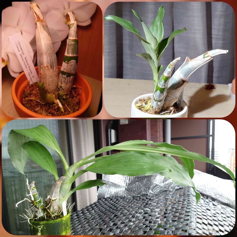 胡蝶蘭がまだ咲いていた頃にやってきたタケノコ。先がそっくり返っていて、太陽のほうを向いて傾いたのか、新芽は逆方向に伸びていったね と思っておりましたが。どうやらこの株の性格だったらしく、ただいま現在のお姿。なんという相似形😁