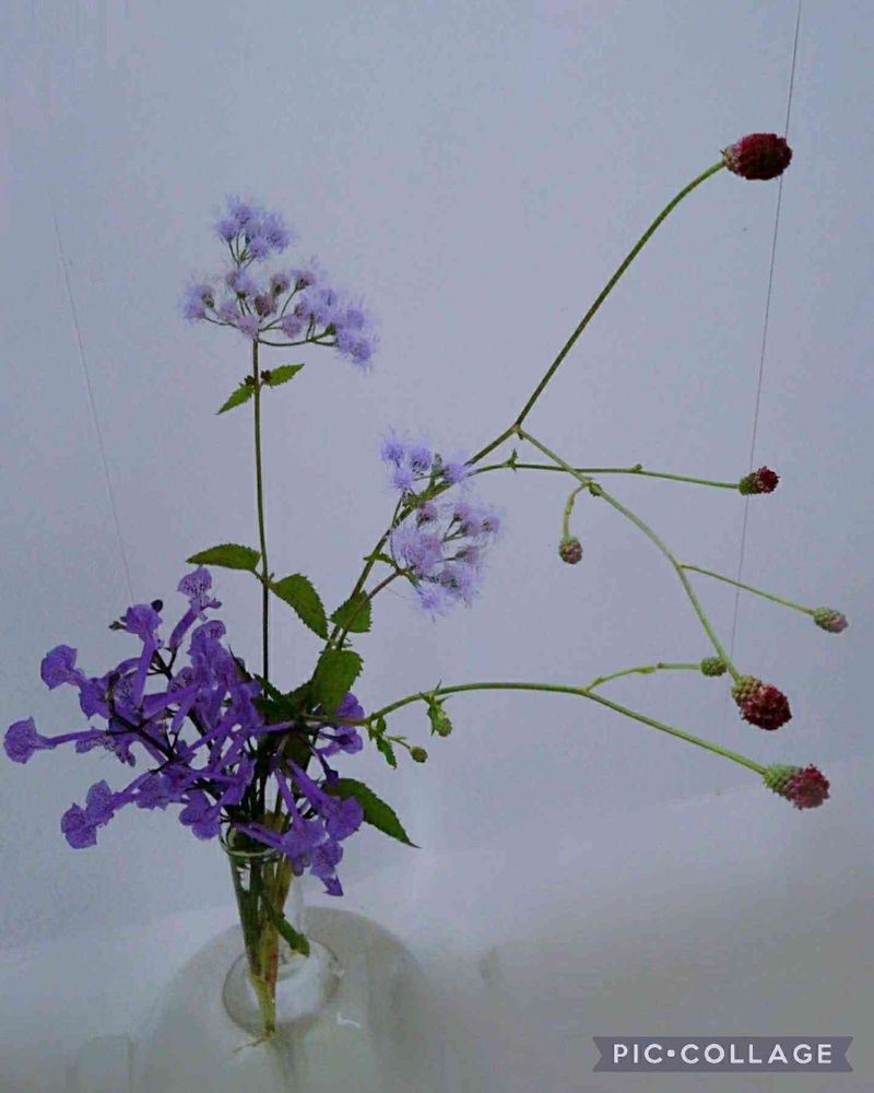 ワレモコの切り花頂いたのでお庭の花と飾ってみました💜💜💜