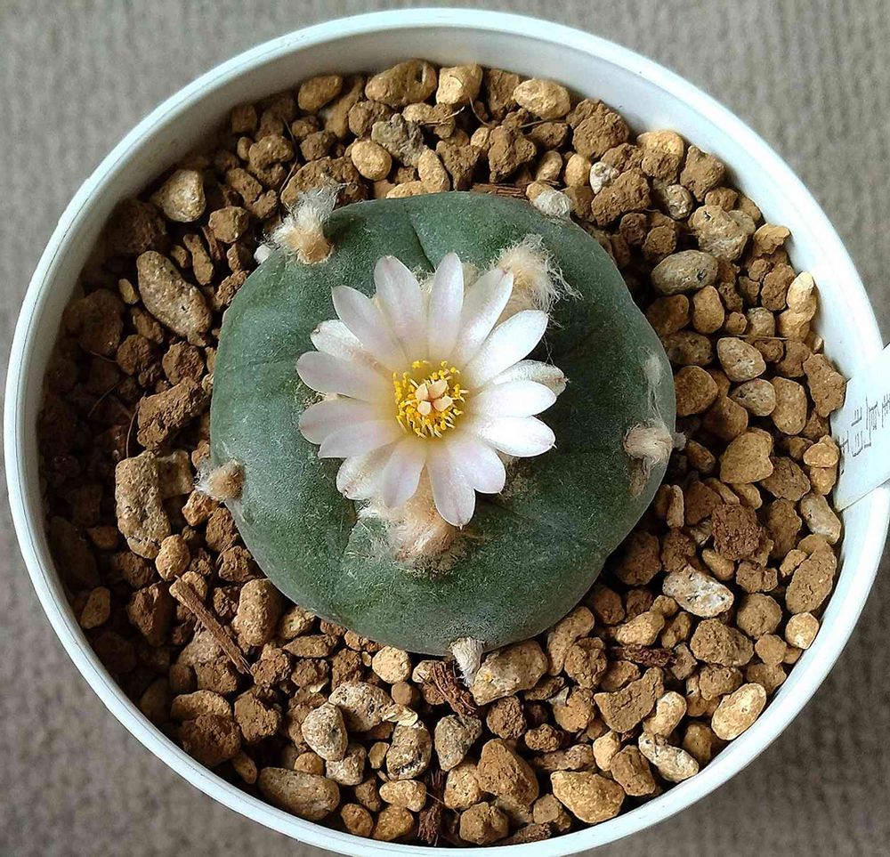 台風一過で急に涼しくなったし、もうロホホラの花は見納めかなーと思っていたら、いちばん小さい烏羽玉の花が咲いた!