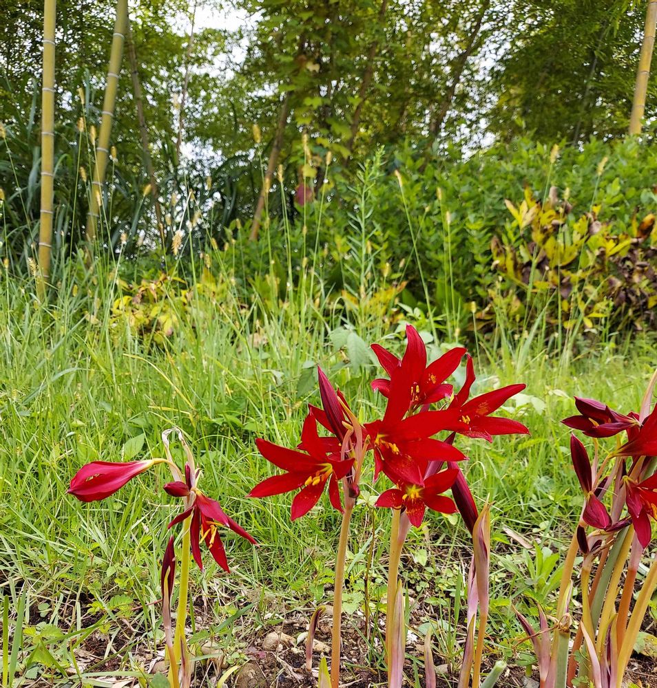 ショウキズイセン またキツネノカミソリなんかは花姿も彼岸花そのもの。
