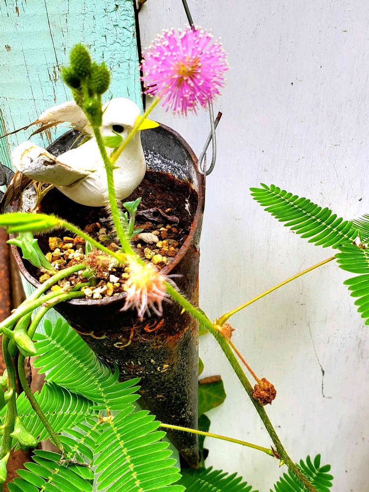 朝お外を見たら可愛いオジギソウの花が咲いていました~🎵😍🎵