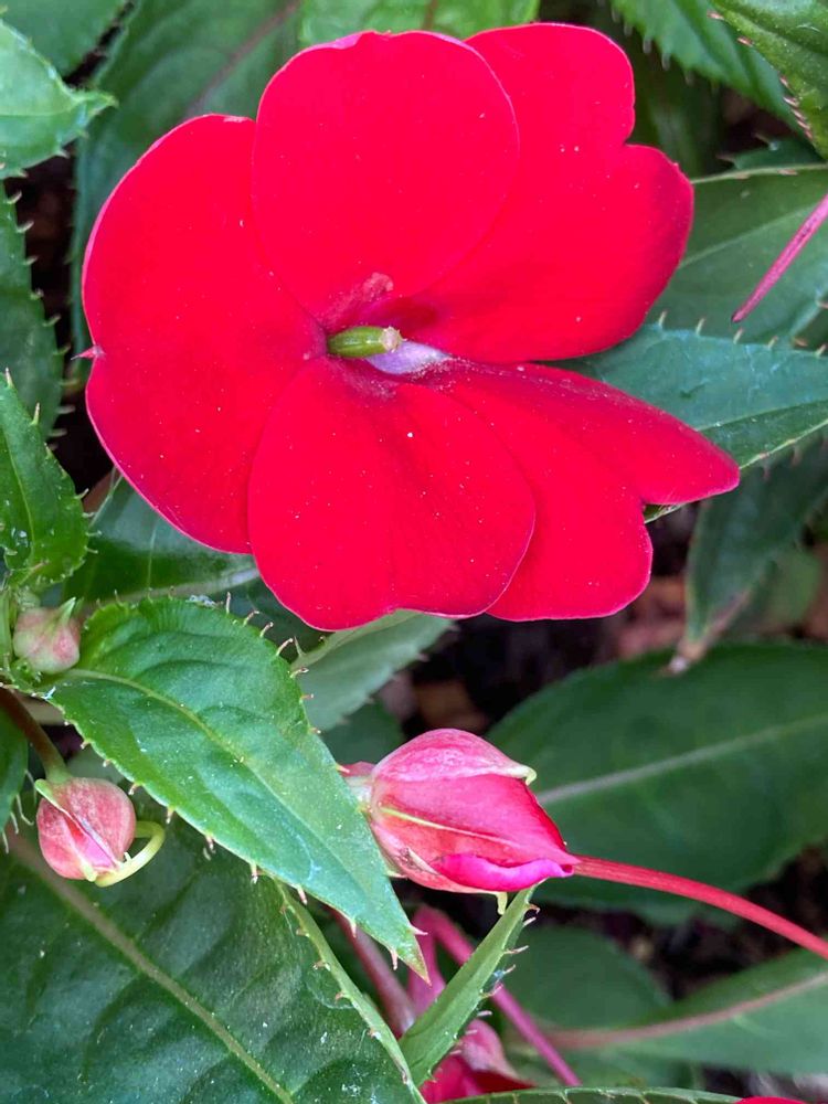 Impatiens hawkeri/Impatiens. Balsaminaceae. Ericales Place of origin/Tropical Regions. New Guinea English name/Busy Lizzie. Impatiens Flower language/Shall we talk a lot. Honesty. Radiance. Strong personality. Wealth Photo 9/21 8:43am 2022