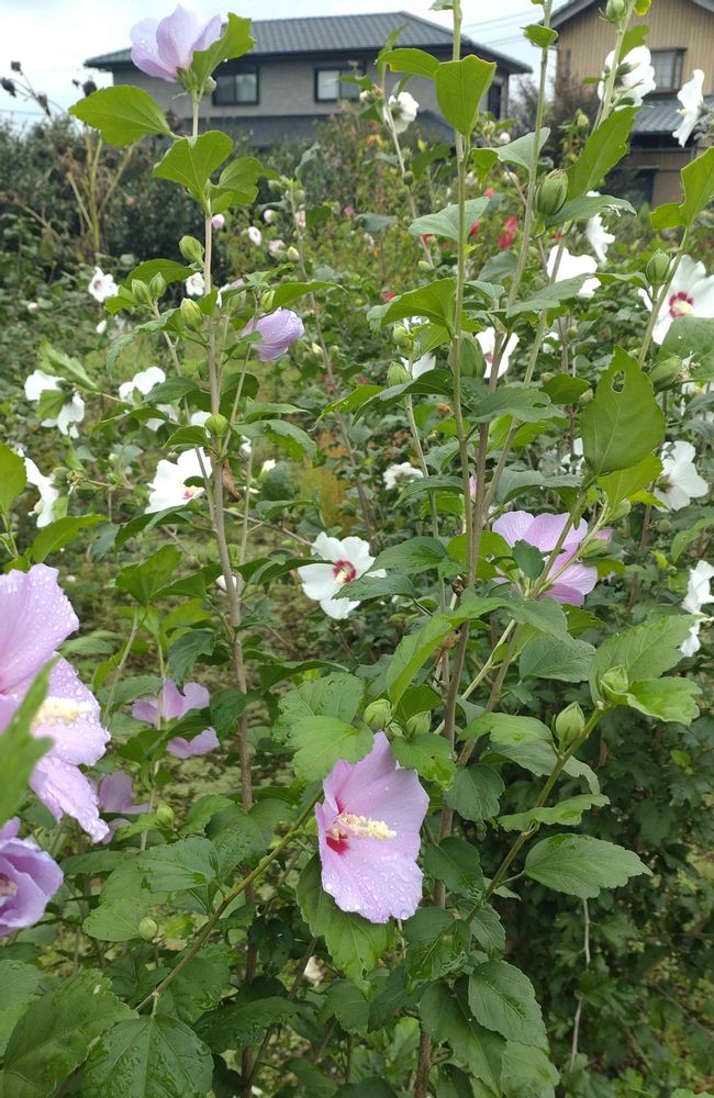 広い庭で、のびのびのムクゲさん達ですね🏵️ 季節が進み花も秋の花になりますね( ´∀`)
