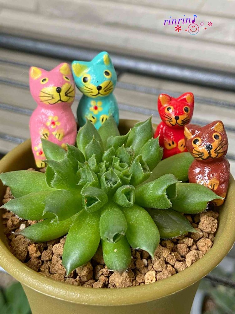 木彫りのニャンコちゃん達、カラフルで可愛い✨