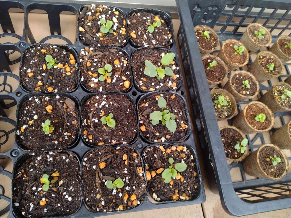 ちょっと大きいのは、確か2週間くらい前にポット上げしたものかな?