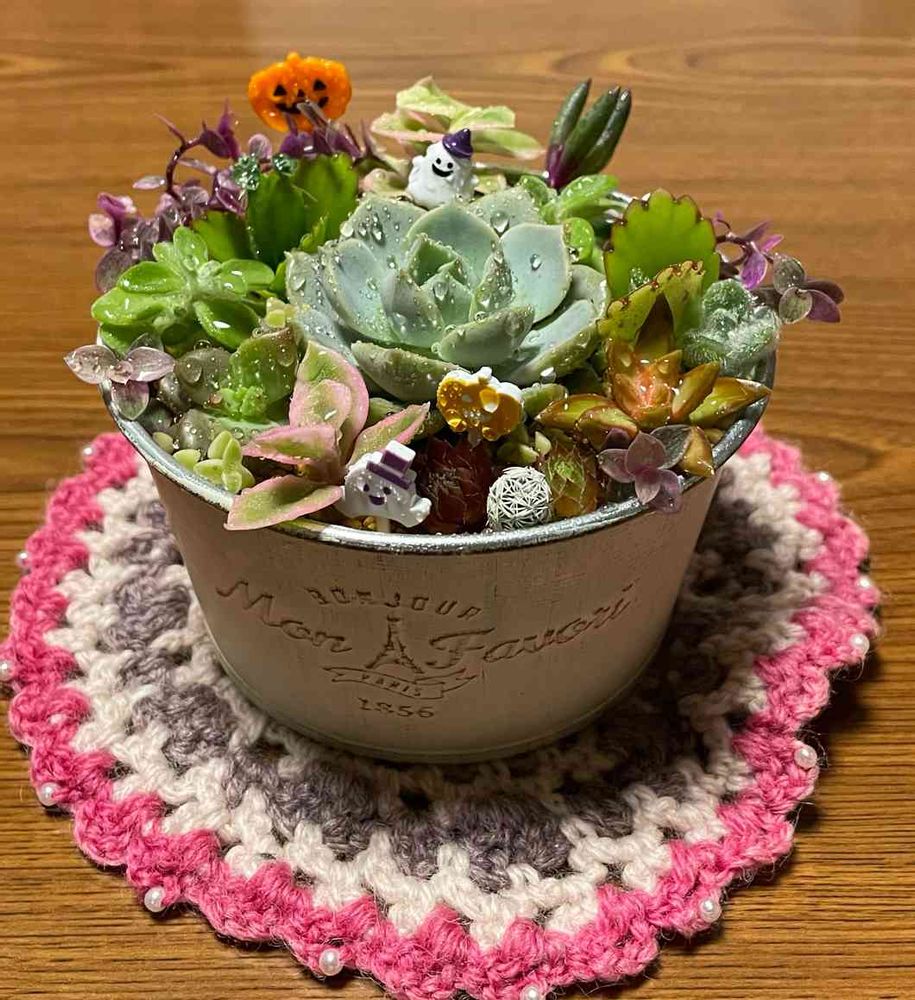 鉢もカボチャのピック🎃も多肉も可愛い😍