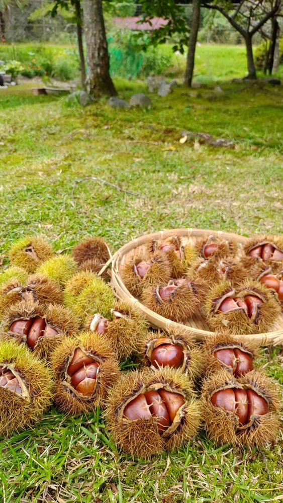 今年の栗はいがの数は少なめですが、一粒の大きさは半端ないです🌰😆👍✨