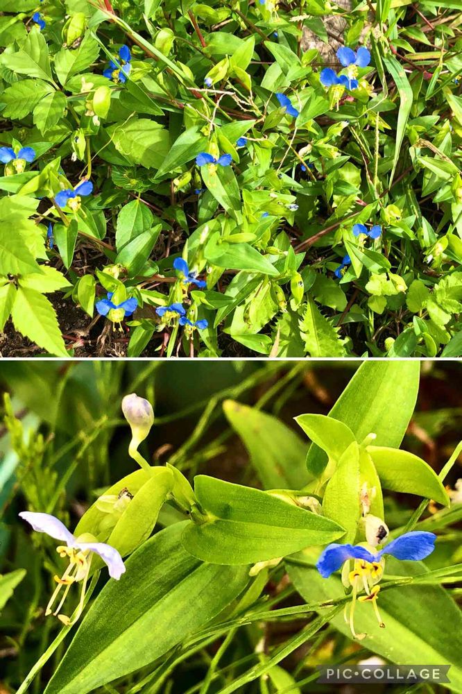 「ツユクサ」も雨に打たれて瑞々しく元気いっぱい😍 ここには「シロバナツユクサ」も幾つか混じってました。