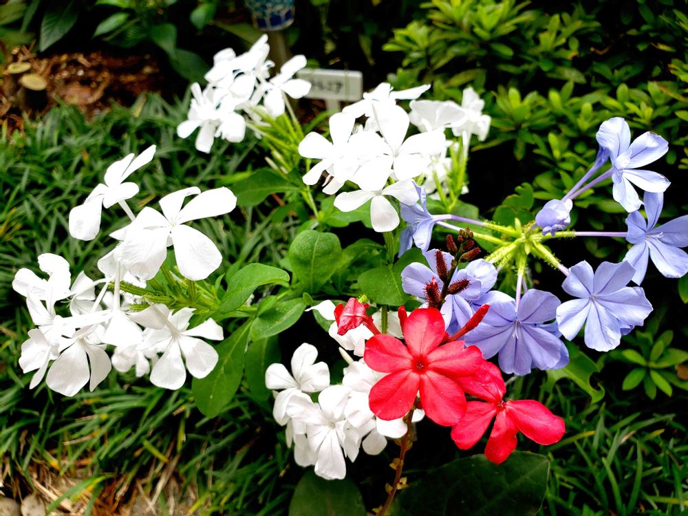さん、今ルリマツリが三色になりました~💦赤はまだ小さいけど、ルリマツリは暴れん坊だから😅大きくせずに育てるつもりです😅