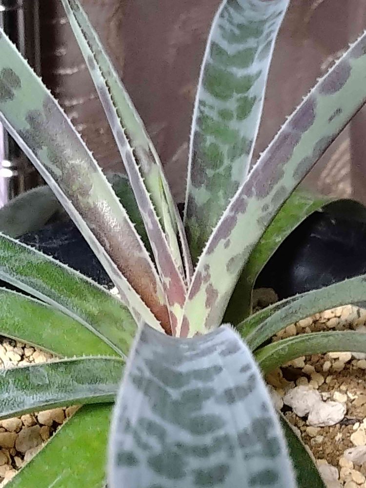 写真は、マンフレダとアガベの属間交雑によって誕生した新ジャンルのハイブリッド多肉植物のマンガべ:ムーングロウくん💓