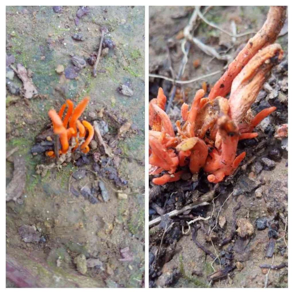 先日 TVでも放映されていましたが、猛毒のある 「カエンタケ」(火炎茸)です。皮膚に触れただけで炎症をおこすそうです😓