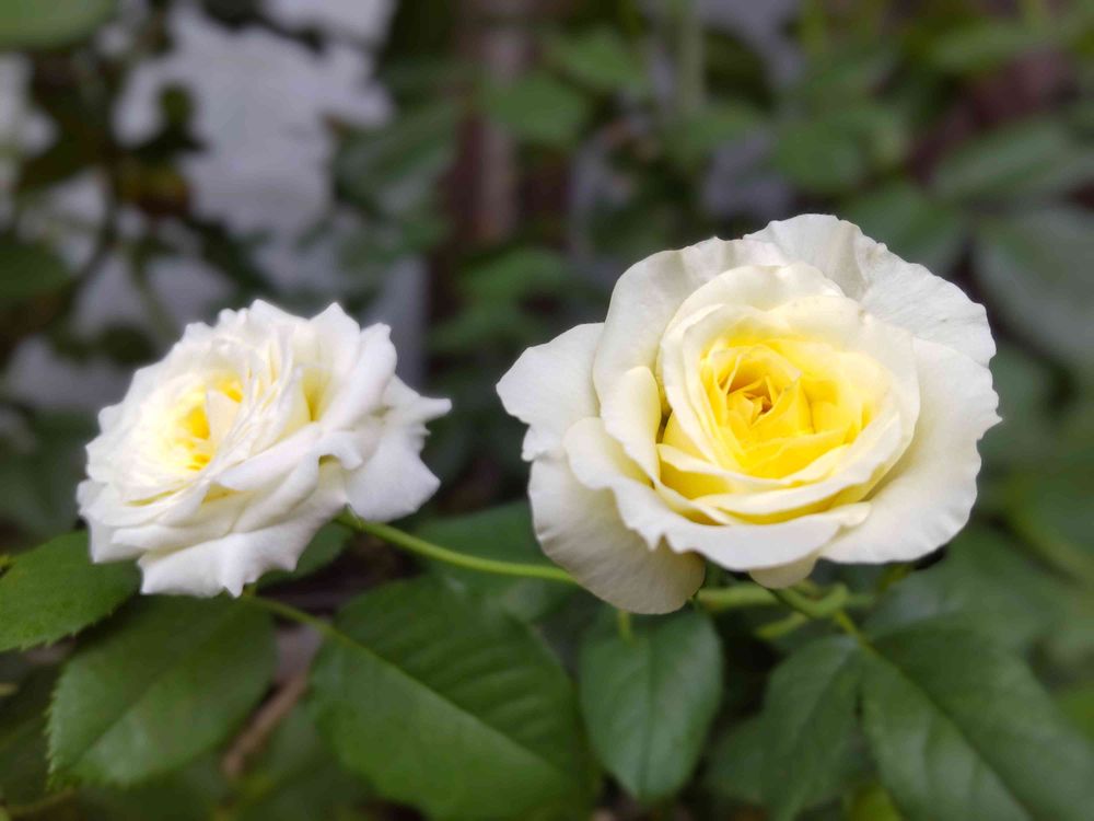 大輪系の💛エリナにも似ていて、実のところ😅あらまっ…🌹💦って思っていた当初。でも日が経ち、このコはこんな薔薇💛→🤍黄色からまわりが白っぽくなっていき、やはり真ん中には黄色みが残ります。