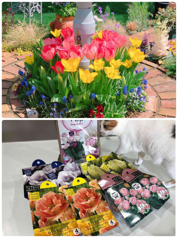 去年はバードバスの周りに黄色とピンクを30球ずつ植えたんですが咲いてみるとこれで60球なの⁇🙄⁇て💧意外と使いますね(๑˃̵ᴗ˂̵)