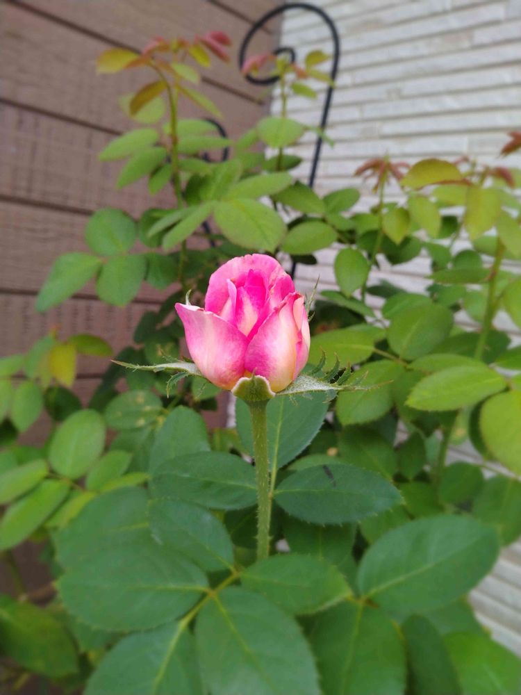 緑の中に1つだけ美しいツボミがあってうっとりしています😍🌹