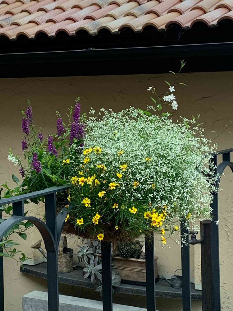 家に帰るとまずこのハンギングが迎えてくれホッとします。水やりが欠かせませんが、大事な玄関の顔です。