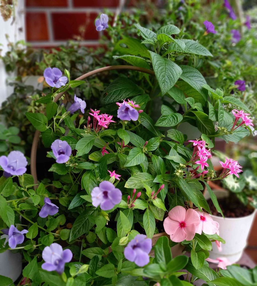 カタリーナさんあちこち暴れていますが💙💜中々一緒に咲いてくれないので😅寄せ植え難しいですね🤗