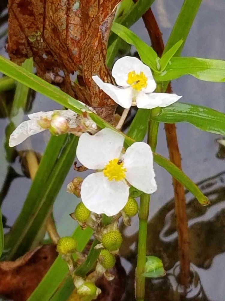 ミズアオイと同じ蓮田に咲いていました。和名は葉の形が人面状で水上に高く伸び出ることからだそうです