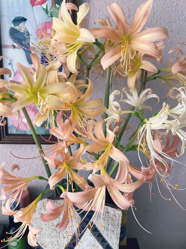 彼岸花って色々な色があるんですね🫢赤、白、黄色…このお色は初めてです😃