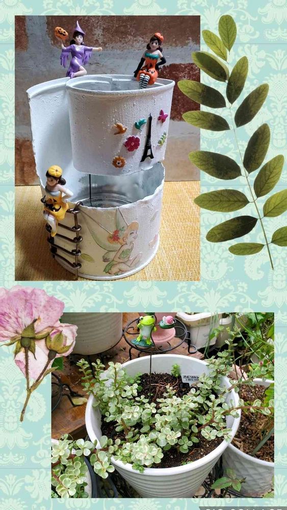 🎃ハロウィン👻の飾り付けも台風🍃🌀☔で出来ないので、リメ缶作って少し飾りました🥰(まだ多肉ちゃん植えてないけど😅)