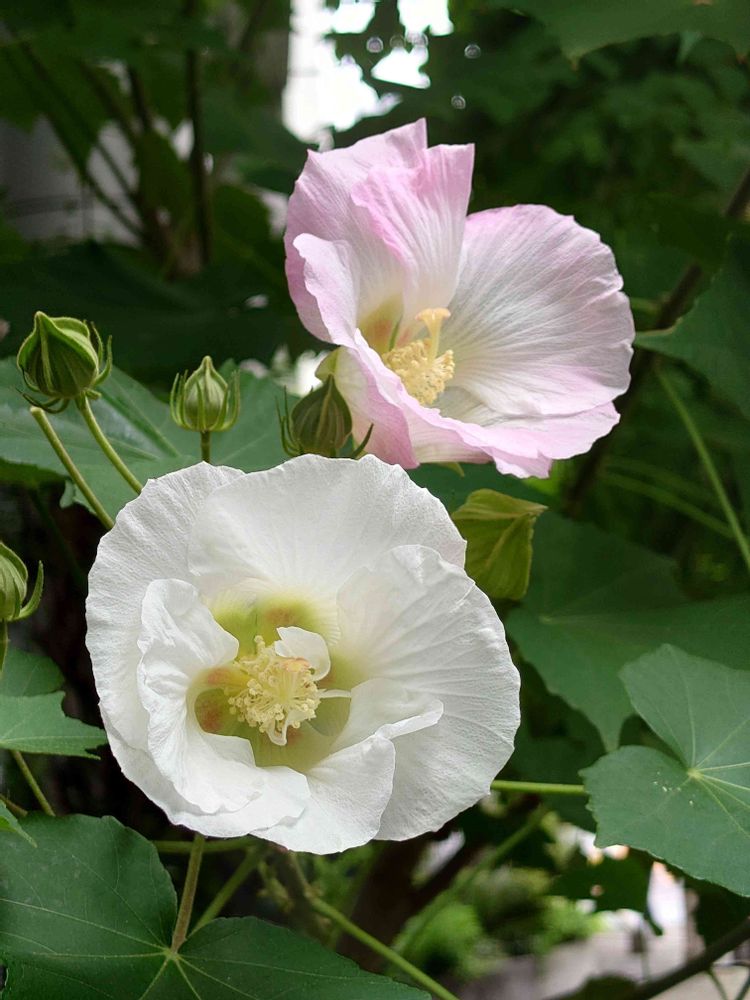 空に向かって咲く芙蓉の花が綺麗でした。